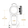Today, the Leap mount features an even stronger base with a forward lean to provide more room for magnifiers, and chamfered side pockets for improved thumbscrew access. The re-designed clamp has discreet hardened steel pins and a stopper to indicate when it's sufficiently open to clear a Picatinny rail.