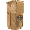 This aid kit is made of super compact, 500 denier nylon bag features a unique front tourniquet pouch that easily opens with the pull of a tab. This rapid access pouch allows for one hand removal of your tourniquet of choice. This pouch includes standard MOLLE style attachment for mounting in the standard vertical position on your kit. The ROO M-FAK could also be mounted horizontal on a duty belt.